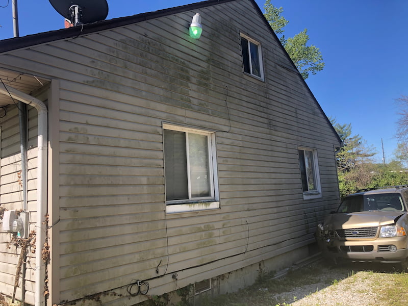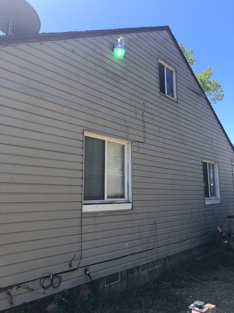 This customer wanted their concrete walkway and house cleaned from all of the dirt that has pilled up over the years. This customer had never pressure washed their home and some of the black mold has permanently stained the vinyl. We used a safe mold mixture to remove all of the green algae as well as any black mold.