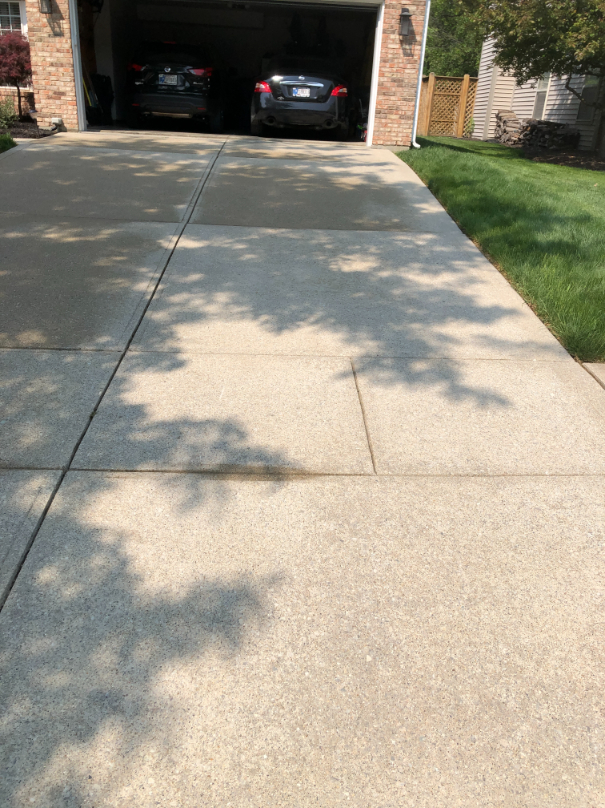 Paul contacted us originally to get his house cleaned up before Memorial Day Weekend and once we arrived he explained some concerns with the built up algae and dirt on his driveway as well as his back patio. We were able to come to an agreement that worked for his budget and we were able to remove all of the algae from the surfaces with our low pressure, high volume process. Once the customer came out of the house he joked with us saying, “well you know you’ve done a great job when you don’t even want to walk on your own concrete.”